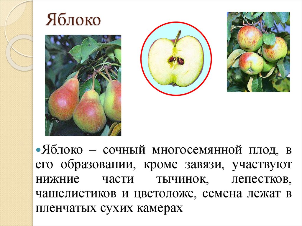Яблоко – сочный многосемянной плод, вего образовании, кроме завязи, участвуют
