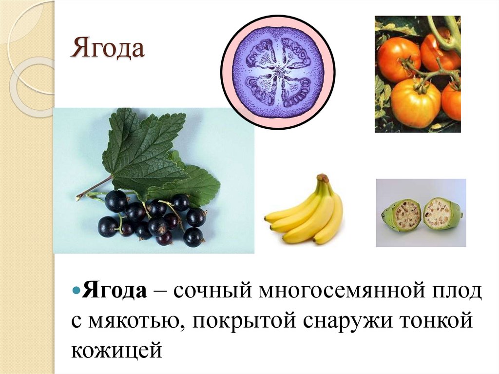 Ягода – сочный многосемянной плодс мякотью, покрытой снаружи тонкой