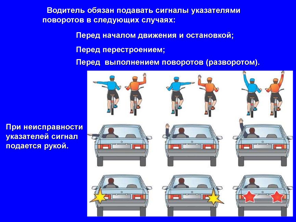 Водитель обязан подавать сигналы указателямиповоротов в следующих случаях: