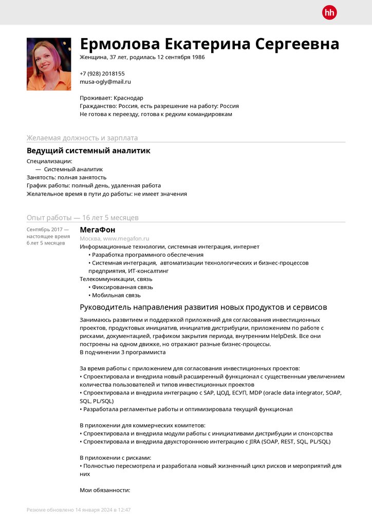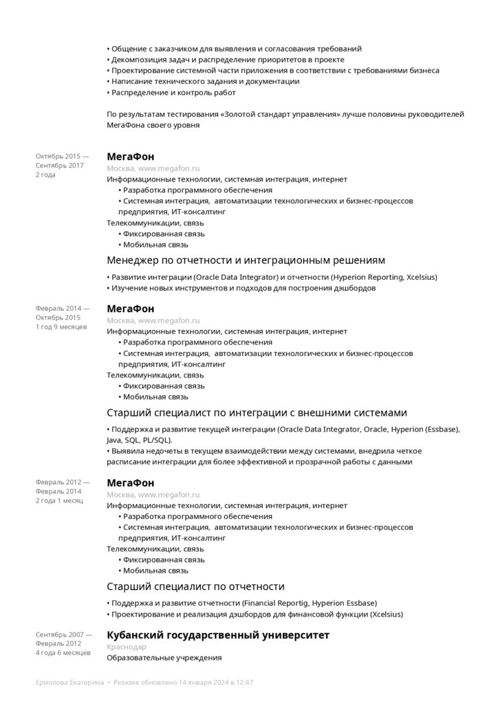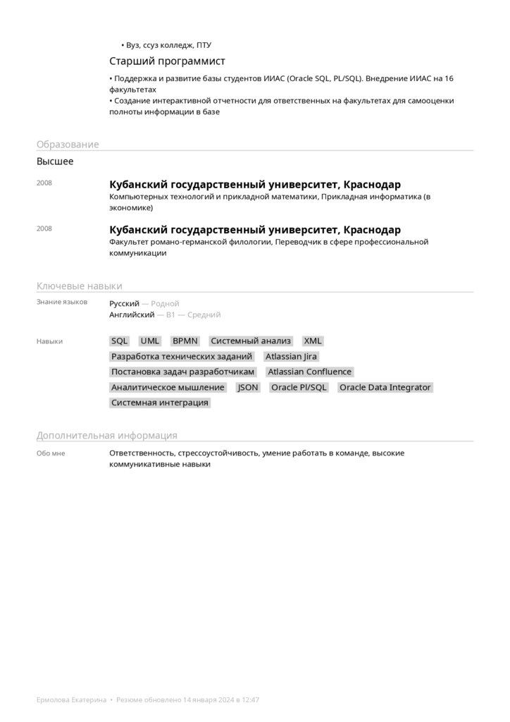 Ермолова Екатерина • Резюме обновлено 14 января 2024 в 12:47