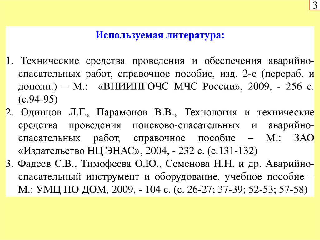 3. Фадеев С.В., Тимофеева О.Ю., Семенова Н.Н. и др. Аварийноспасательный инструмент и оборудование, учебное пособие –