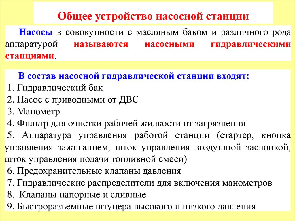 Назначение, разновидности, основные технические характеристики, общее устройство и принцип работы гидравлических станций