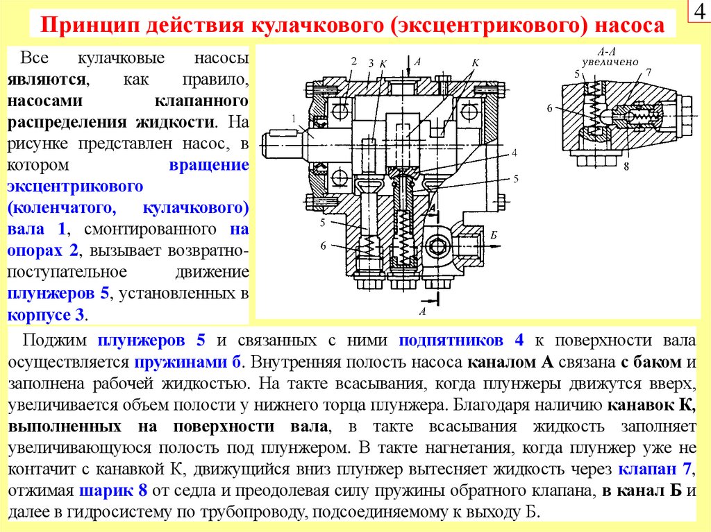 - роторно-поршневые насосы (радиально-поршневой, аксиальнопоршневой, кулачковые (эксцентриковые).