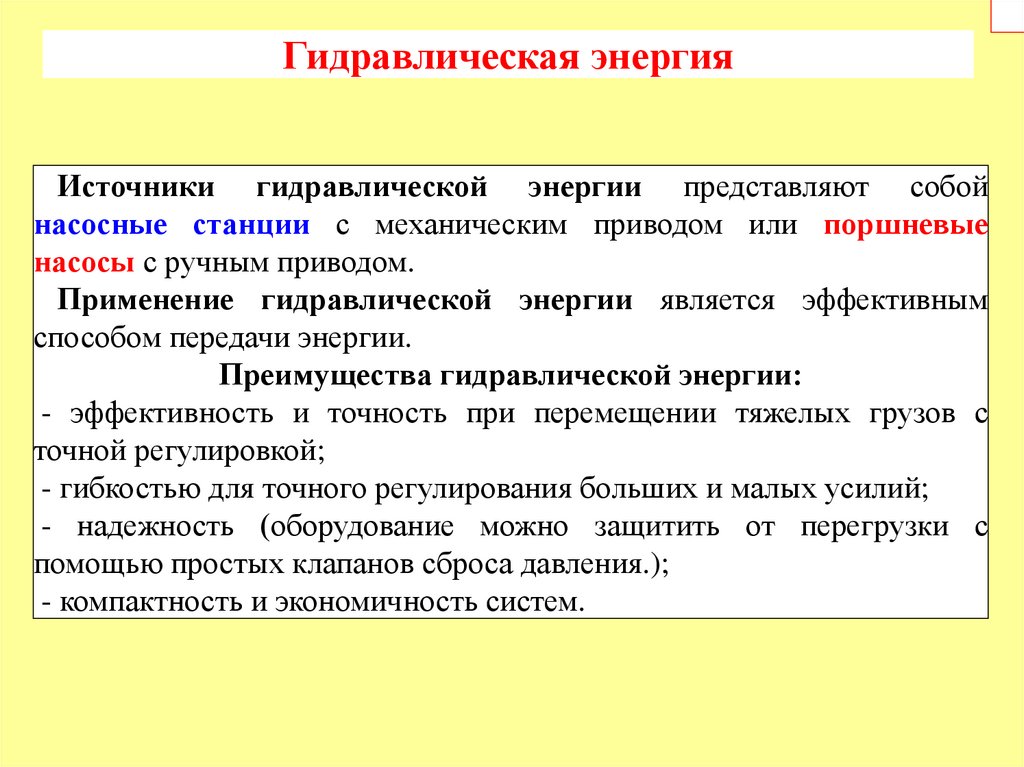 Гидравлическая энергияИсточники гидравлической энергии представляют собой
