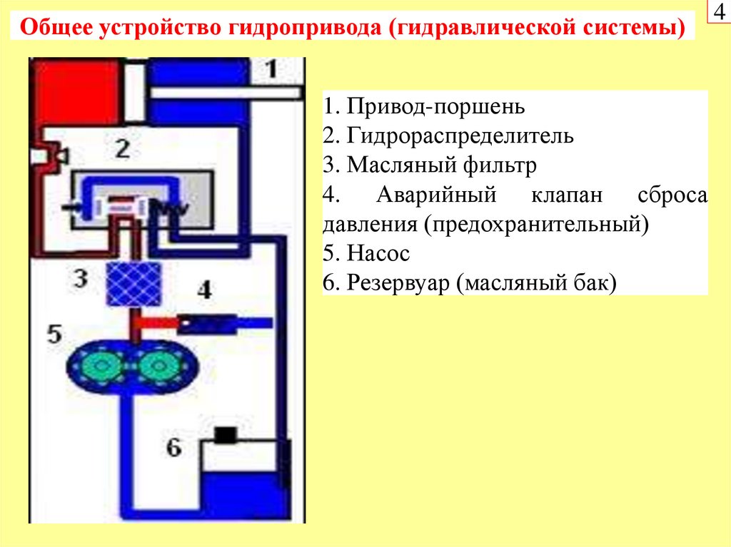 Общее устройство гидропривода (гидравлической системы)1. Привод-поршень