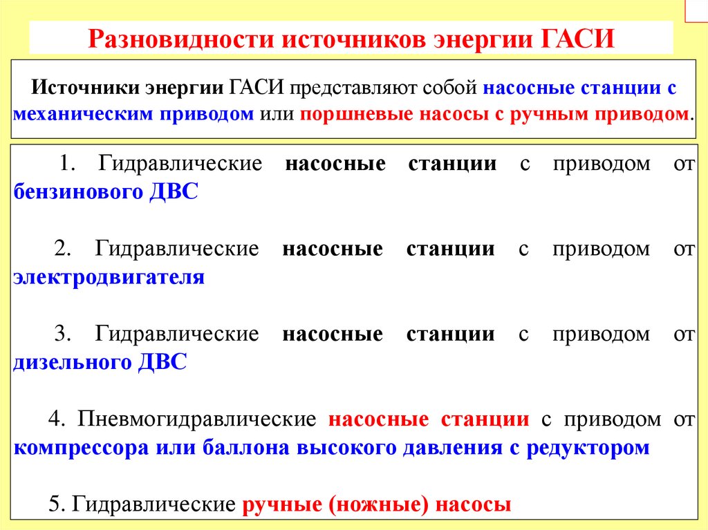 Разновидности источников энергии ГАСИИсточники энергии ГАСИ представляют собой насосные станции с