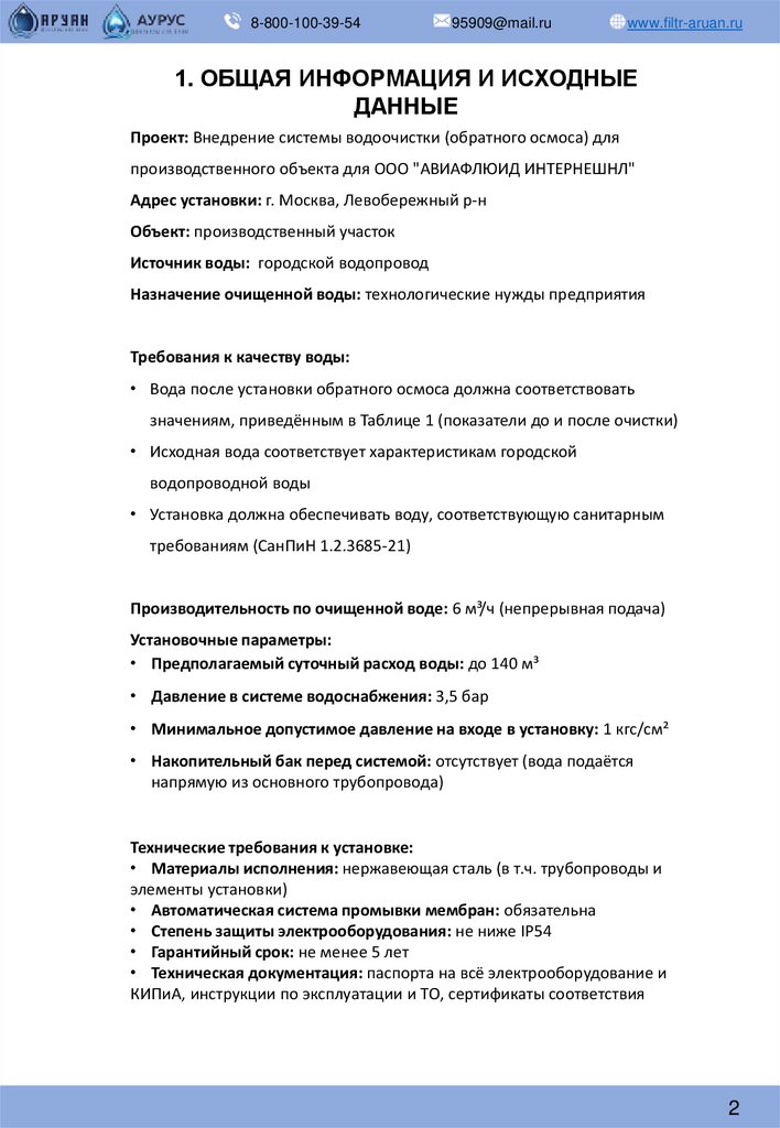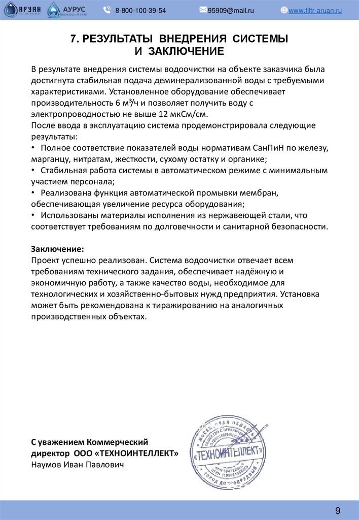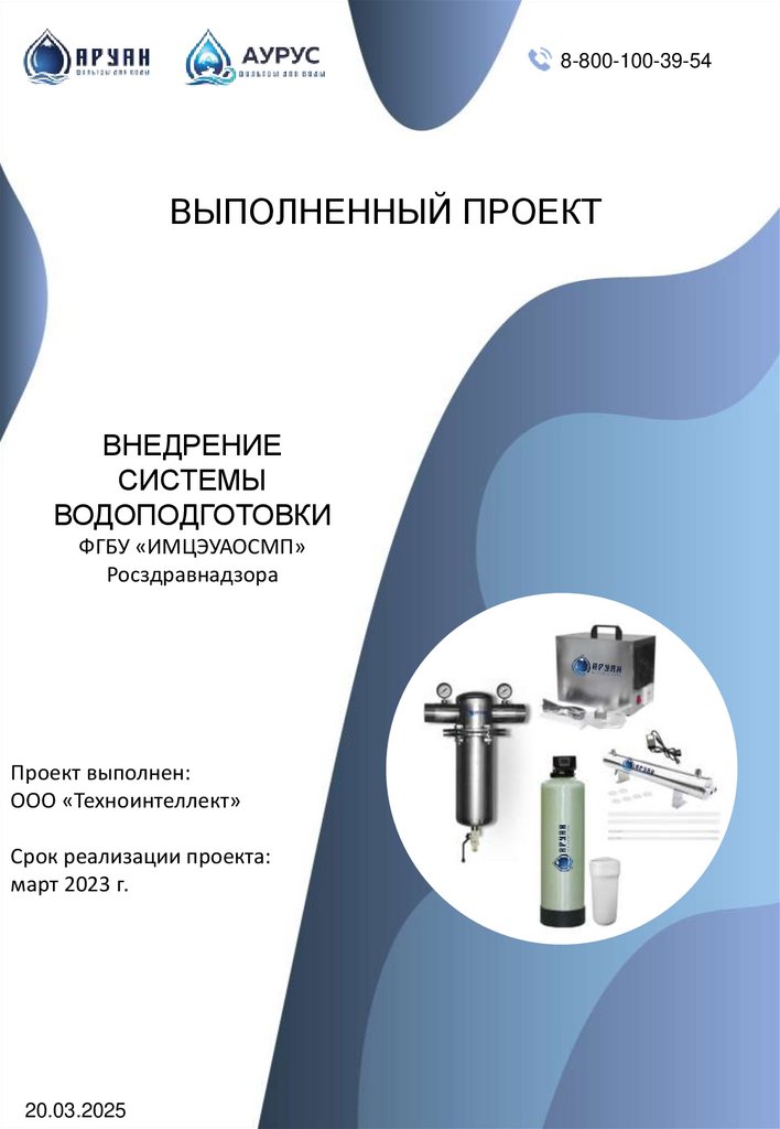 Выполненный проект внедрение системы водоподготовки ФГБУ «ИМЦЭУАОСМП»