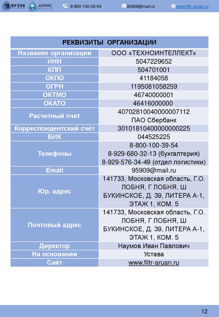 директор ООО «ТЕХНОИНТЕЛЛЕКТ»