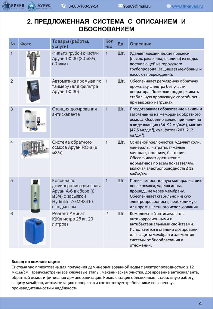 антисакаланта → обратный осмос → ионообменная деминерализация) вода достигает показателей,