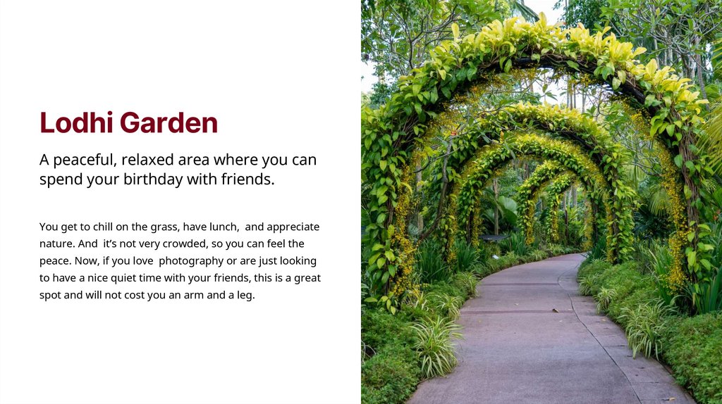 frisbee or cricket. It’s a well-trafficked spot, and best of
