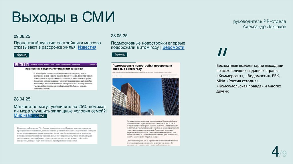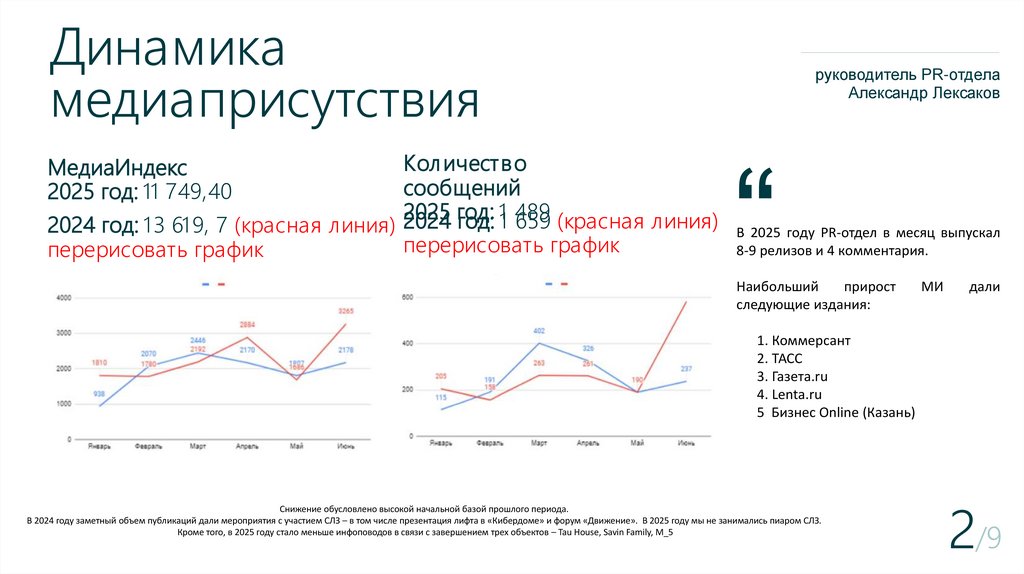 Кроме того, в 2025 году стало меньше инфоповодов в связи с завершением трех объектов – Tau House, Savin Family, M_5