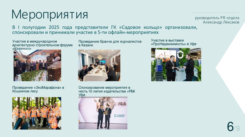 В I полугодии 2025 года представители ГК «Садовое кольцо» организовали,