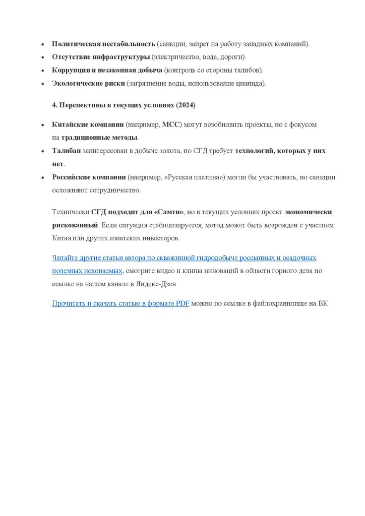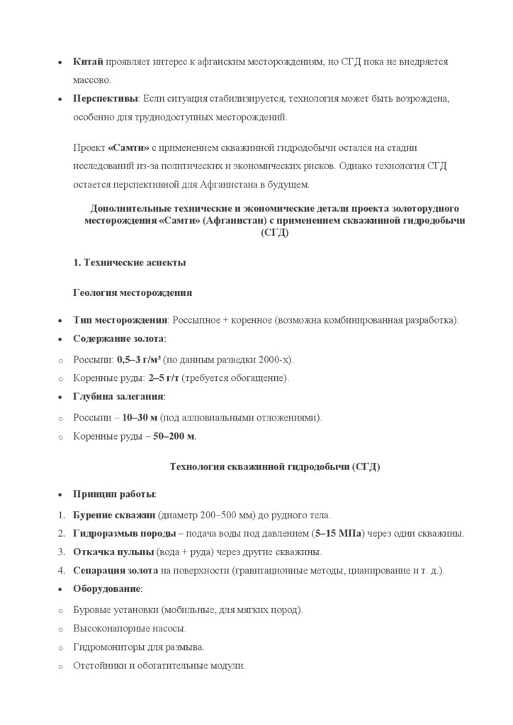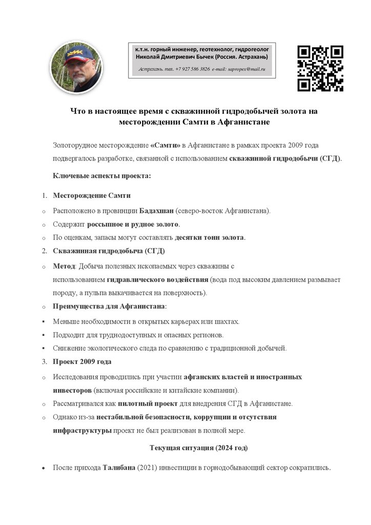 Что в настоящее время с скважинной гидродобычей золота на месторождении Самти в Афганистане?