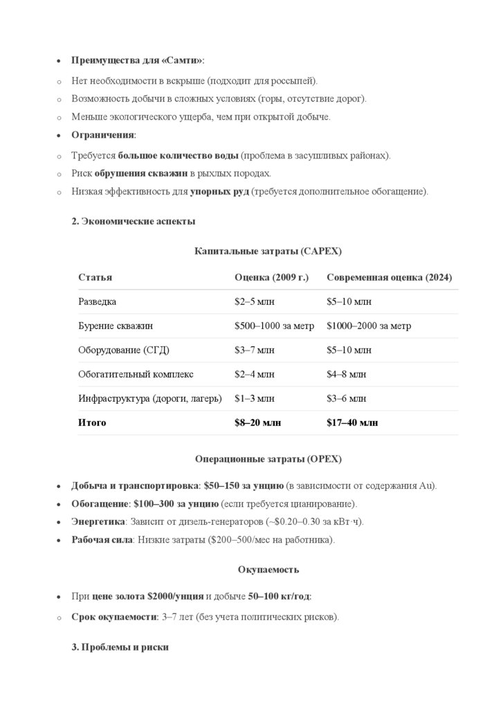При цене золота $2000/унция и добыче 50–100 кг/год: