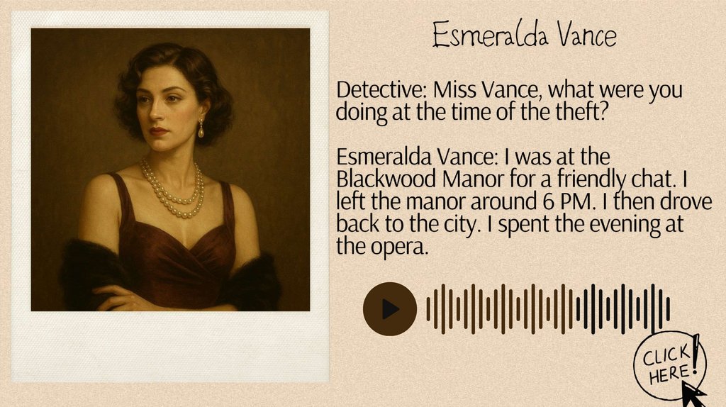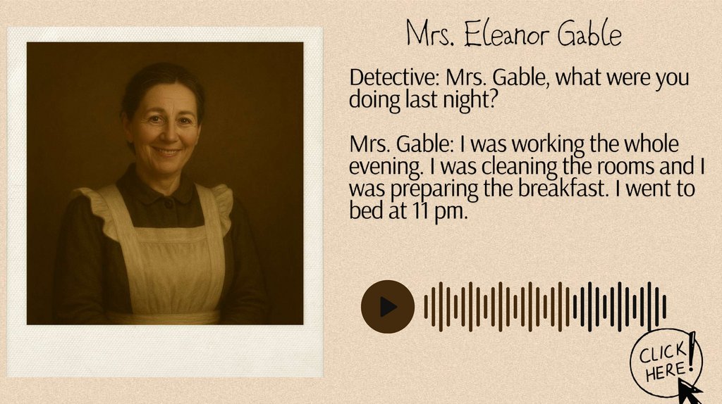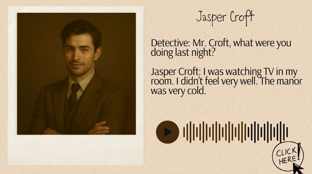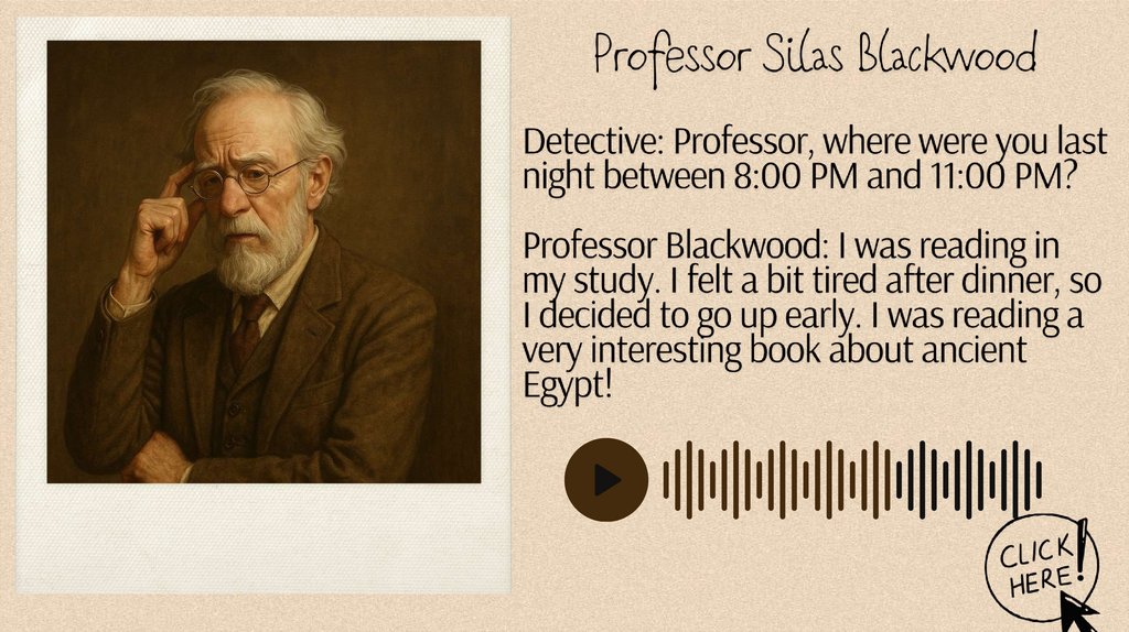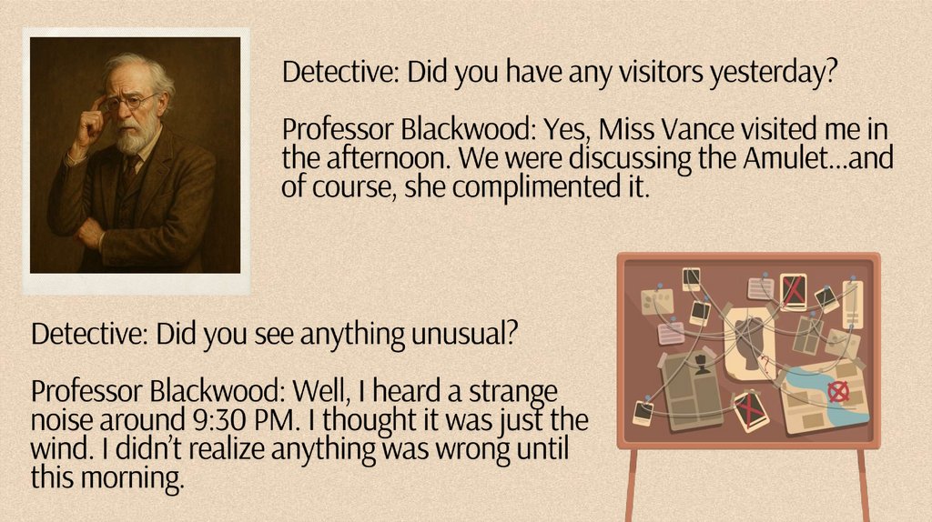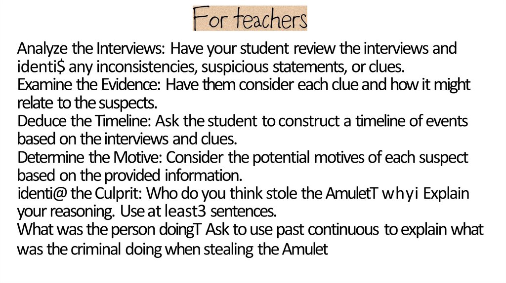 Analyze the Interviews: Have your student review the interviews andidenti$ any inconsistencies, suspicious statements, or clues.