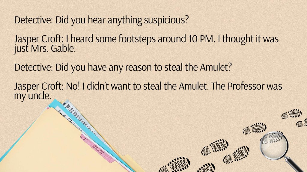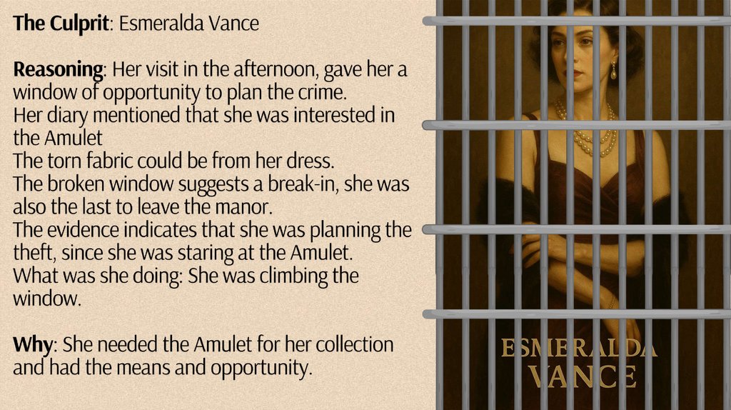 identi@ the Culprit: Who do you think stole the AmuletT whyi Explain
