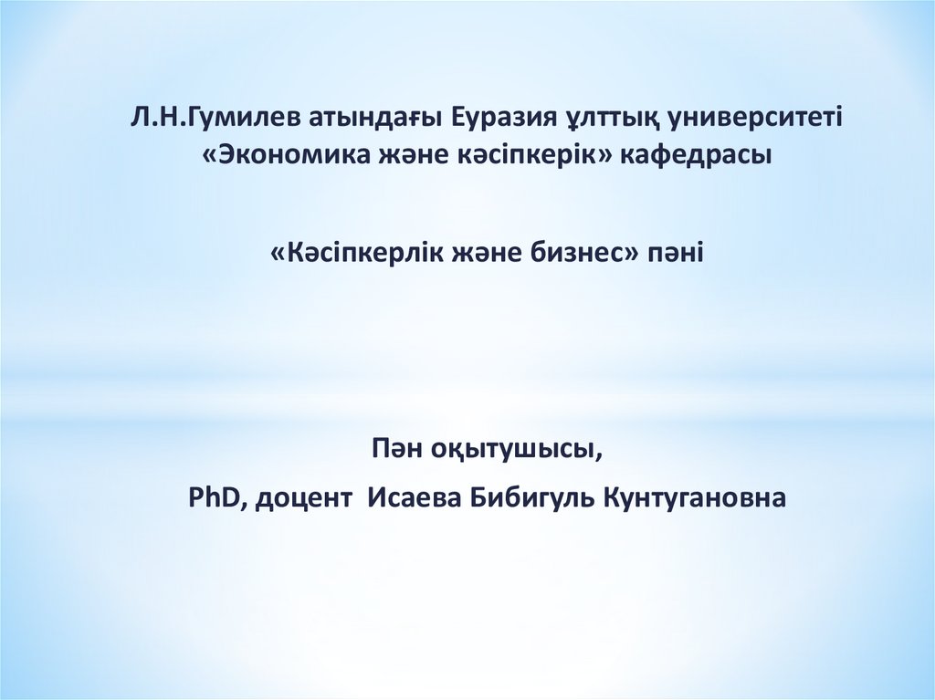 Л.Н.Гумилев атындағы Еуразия ұлттық университеті«Экономика және кәсіпкерік» кафедрасы