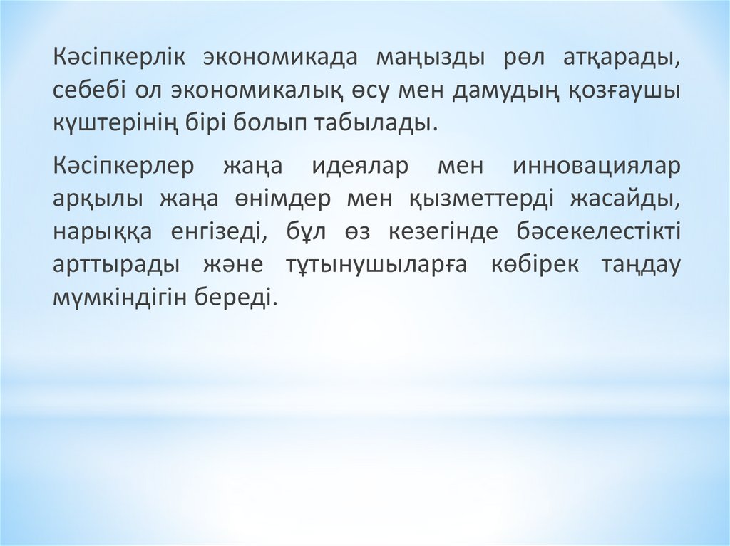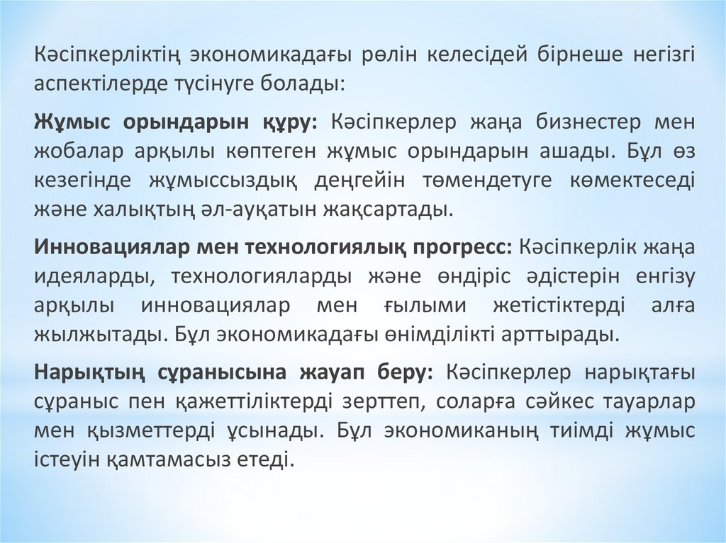 2. Кәсіпкерліктің түсінігі және оныңэкономикадағы рөлі