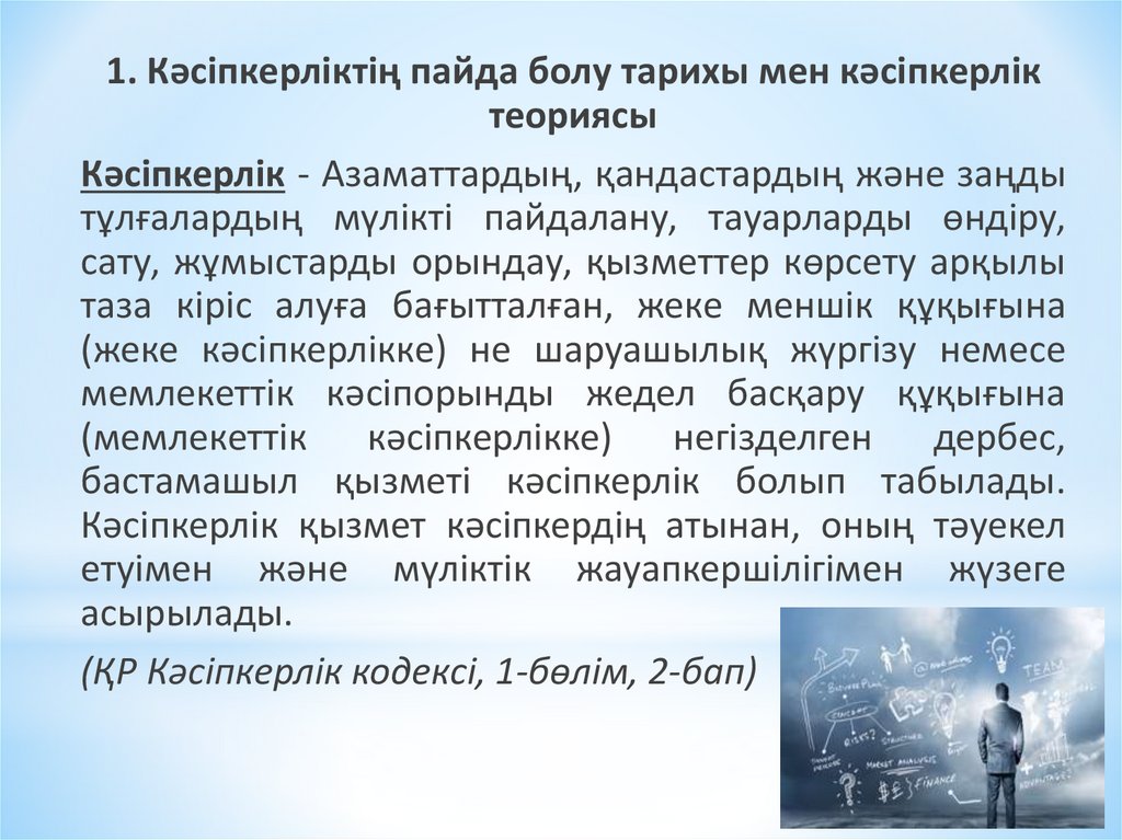 1. Кәсіпкерліктің пайда болу тарихы мен кәсіпкерліктеориясы