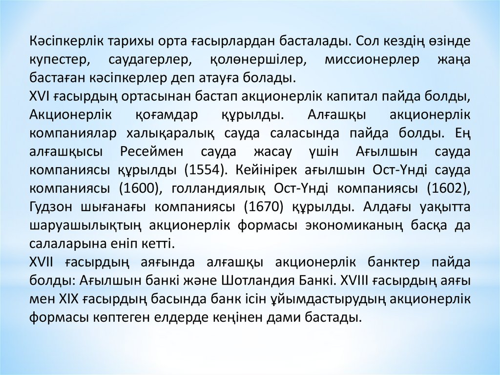 XVI ғасырдың ортасынан бастап акционерлік капитал пайда болды,