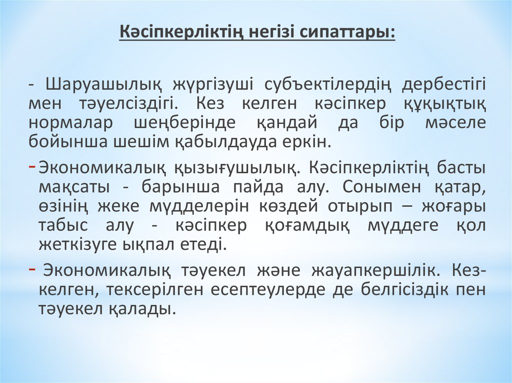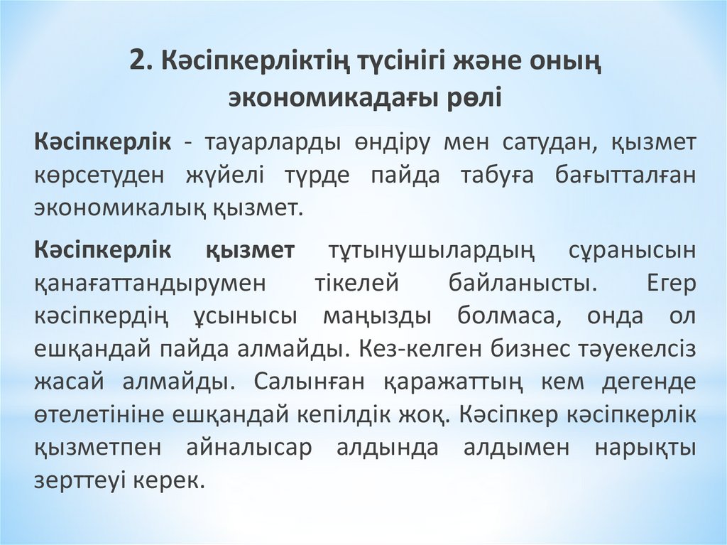 2. Кәсіпкерліктің түсінігі және оның экономикадағы
