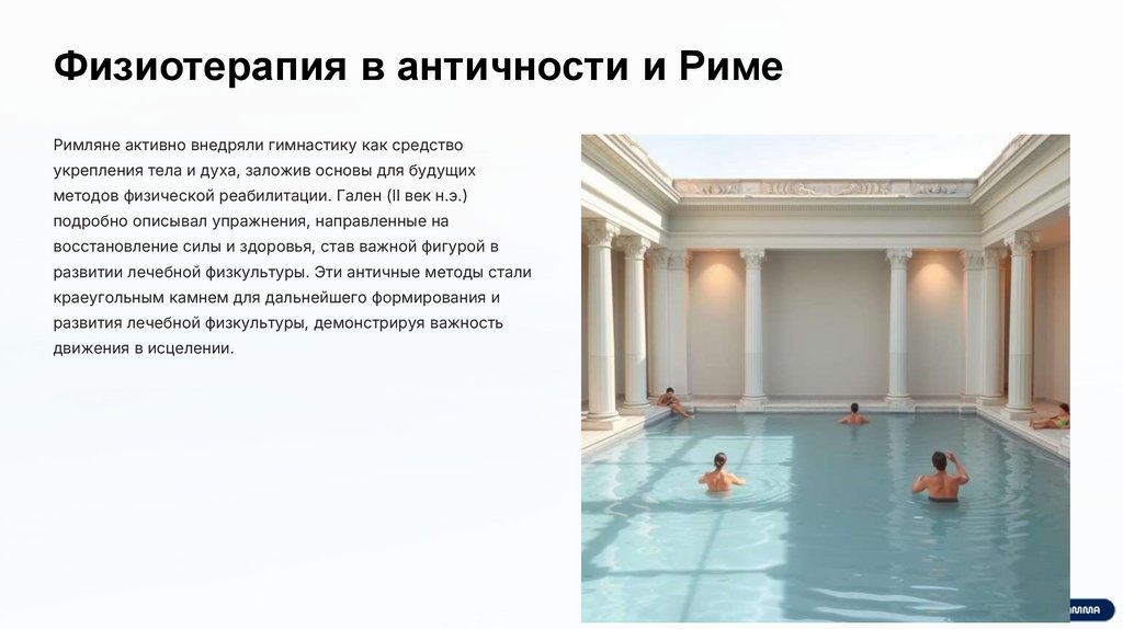 развитии лечебной физкультуры. Эти античные методы стали