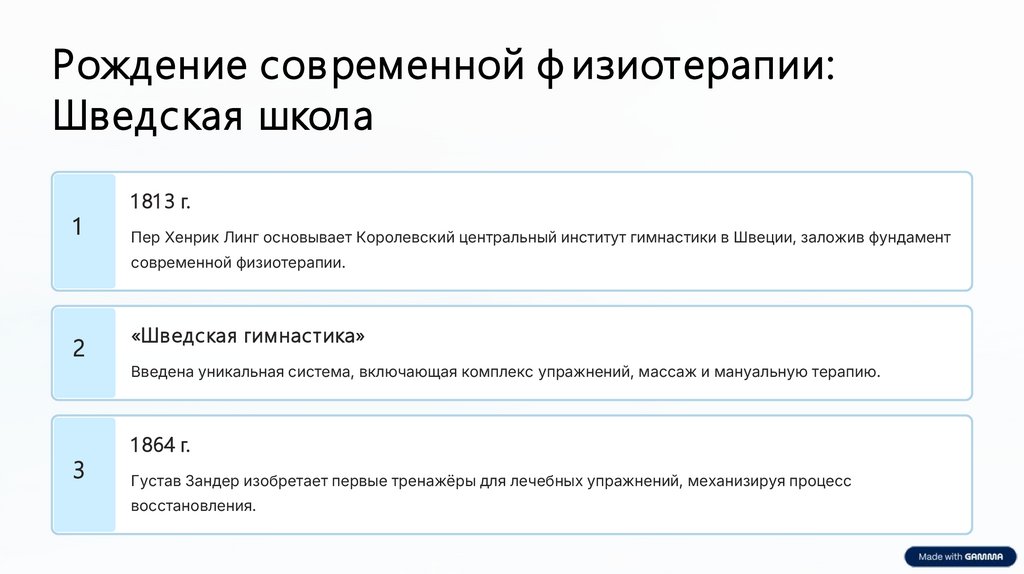 Рождение сов ременной ф изиотерапии:Шведская школа