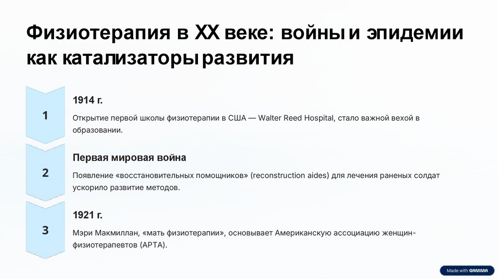 Физиотерапия в XX веке: войны и эпидемиикак катализаторы развития