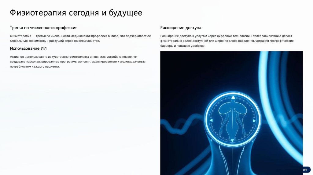 Ф изиотерапия сегодня и будущееТретья по численности проф ессия