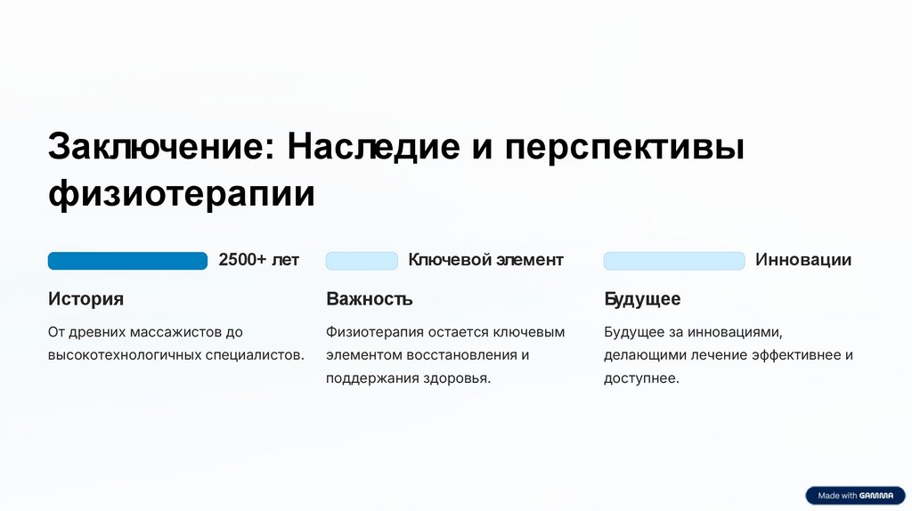 Заключение: Наследие и перспективыфизиотерапии