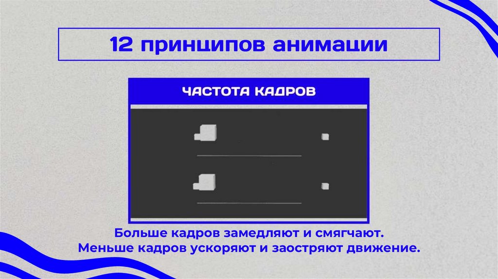 Меньшее количество кадров делаетдействие ускоренным, а большее