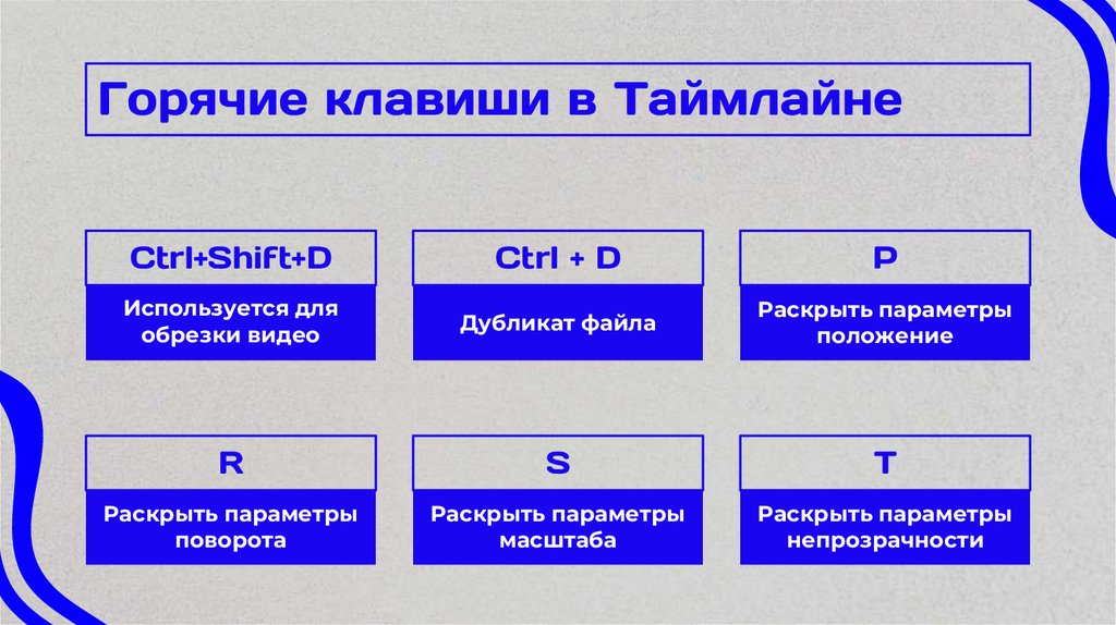 Горячие клавиши в ТаймлайнеCtrl+Shift+D