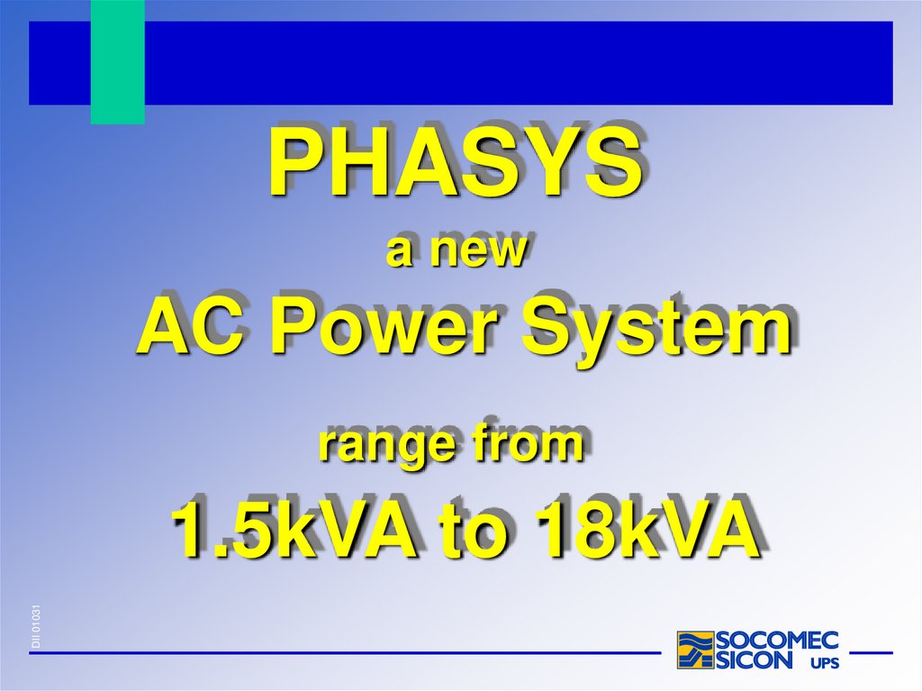 Nessun titolo diapositiva. Phasys a new AC Power System range from DII 01031