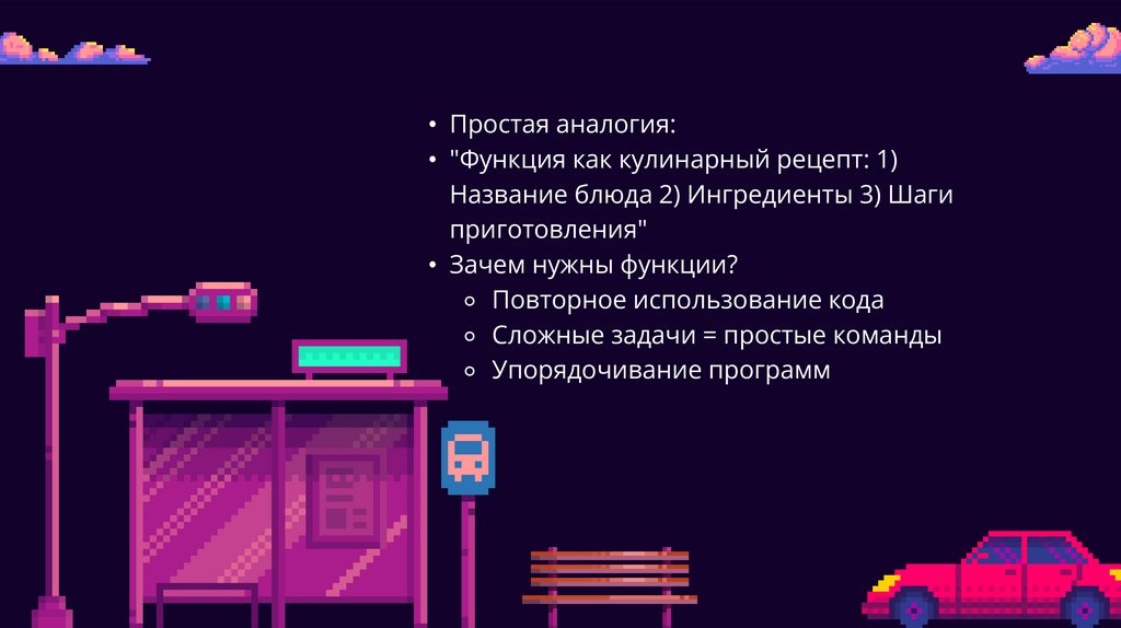 • Простая аналогия:• "Функция как кулинарный рецепт: 1)