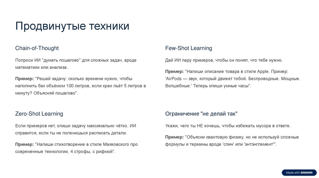 Дай ИИ пару примеров, чтобы он понял, что тебе нужно.