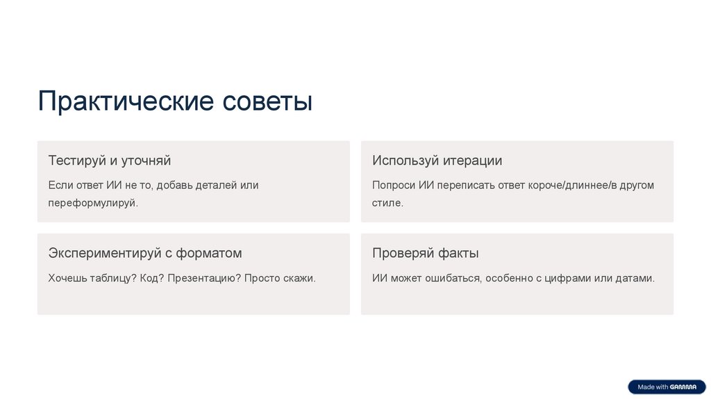 Первый ответ не всегда идеален. Уточняй, добавляй детали, проси переформулировать.