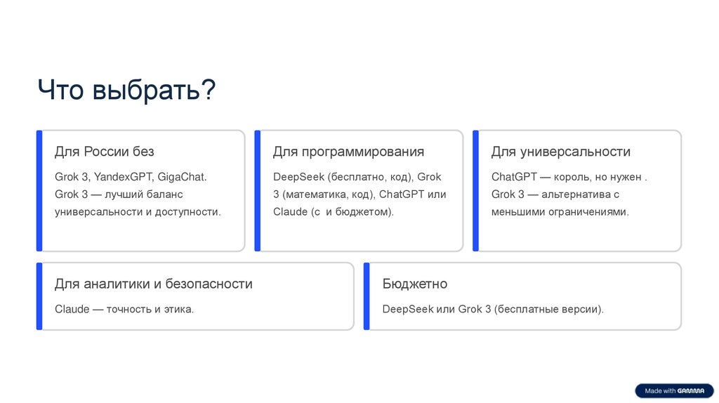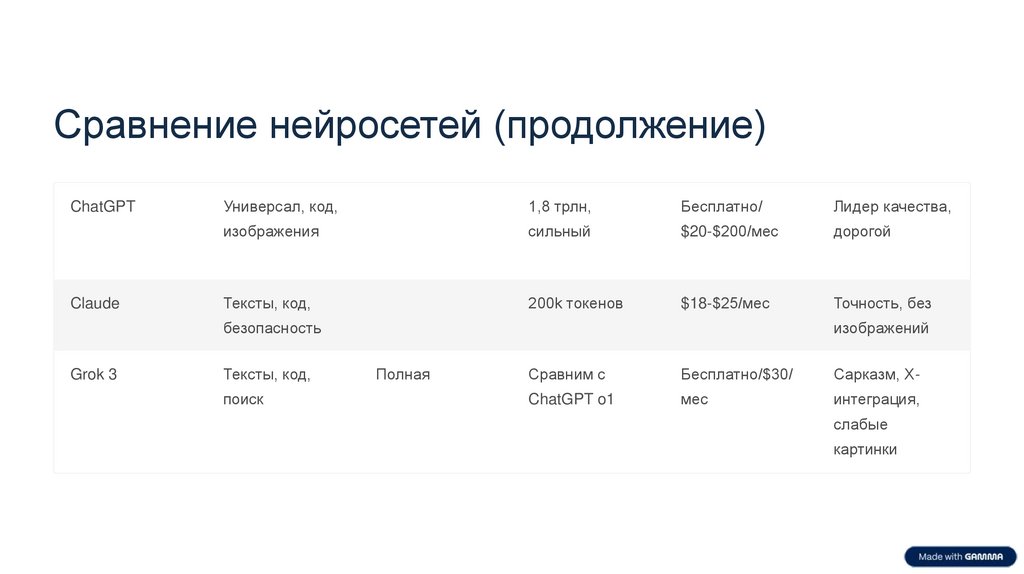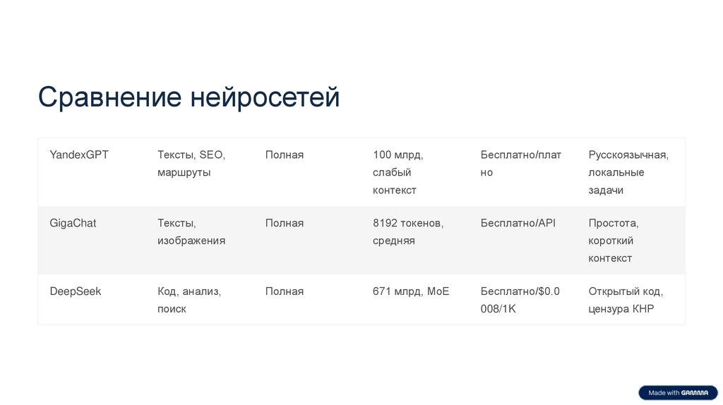 Хочешь таблицу? Код? Презентацию? Просто скажи.