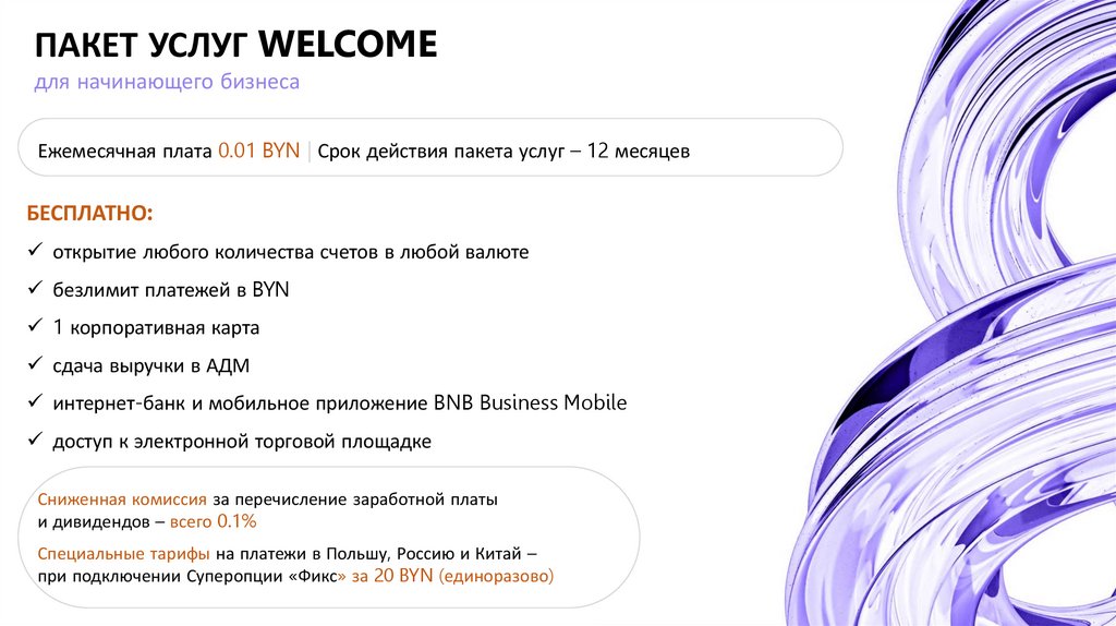 ПАКЕТ УСЛУГ WELCOMEдля начинающего бизнеса