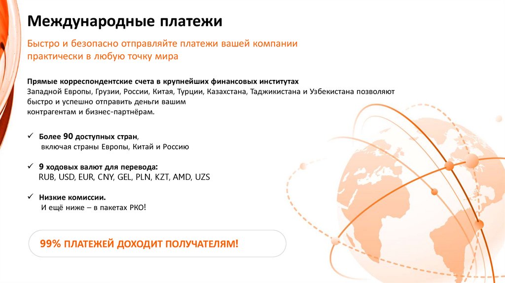 Международные платежиБыстро и безопасно отправляйте платежи вашей компании