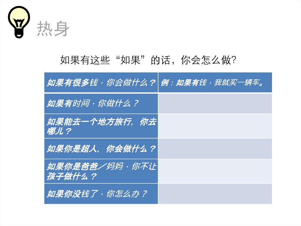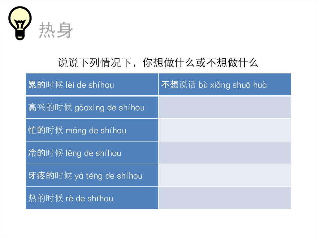 热身说说下列情况下 你想做什么或不想做什么