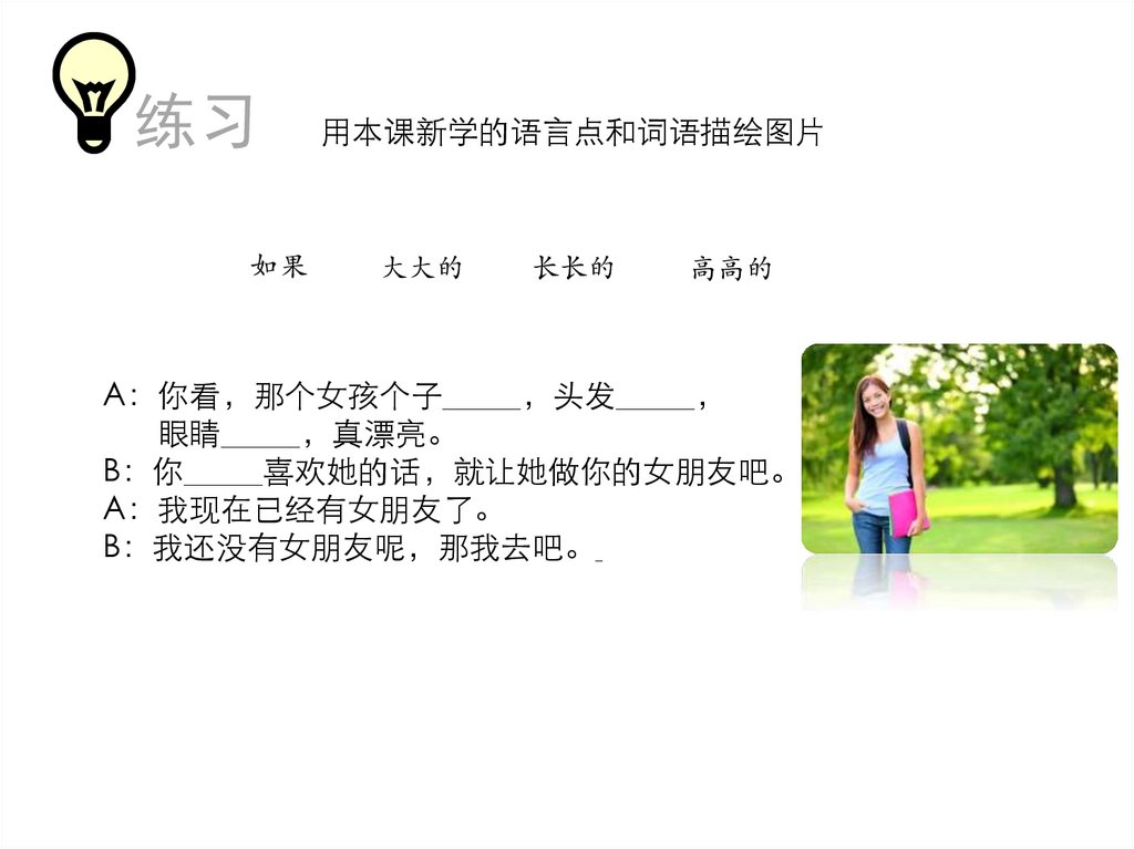 练习用本课新学的语言点和词语描绘图片