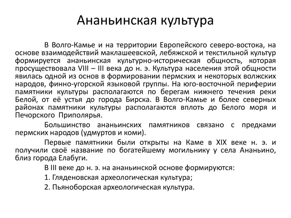 ананьинской культурной исторической области: северо-восток Европы в