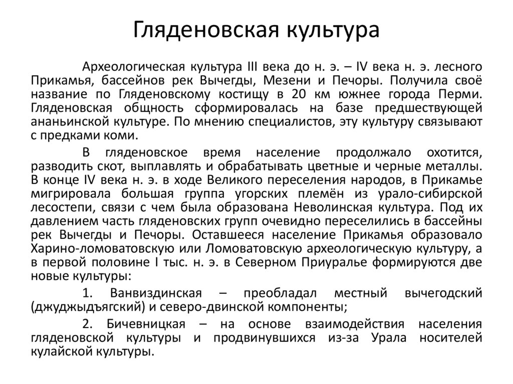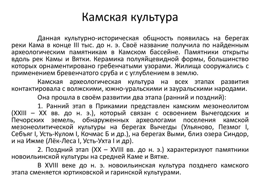 Камская археологическая культура на всех этапах развития