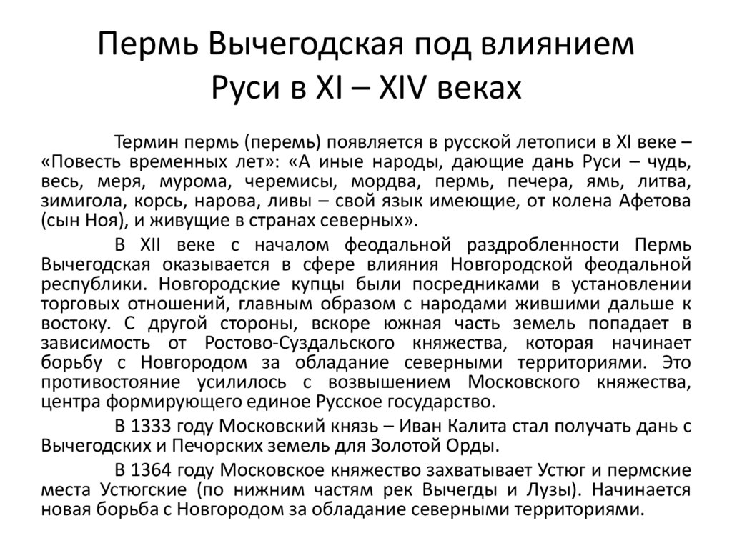 При расселении протоуральской языковой семьи в конце III тыс. дон. э., часть населения заселилась в бассейнах рек Печоры и Вычегды со