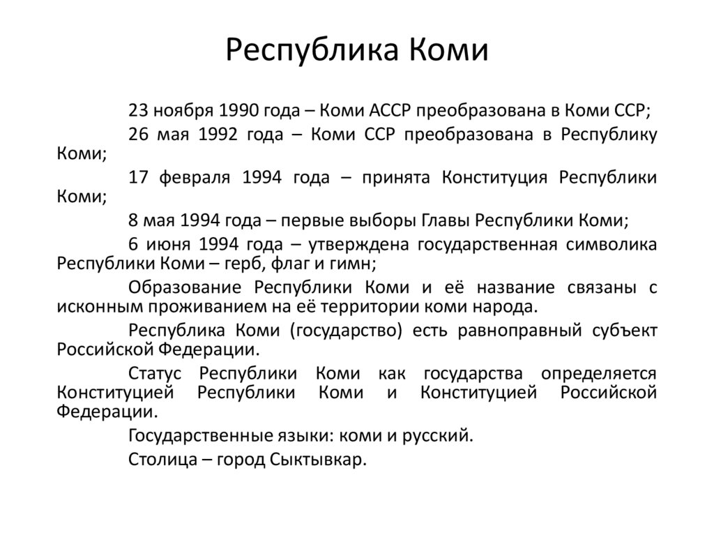 Статус Республики Коми как государства определяется