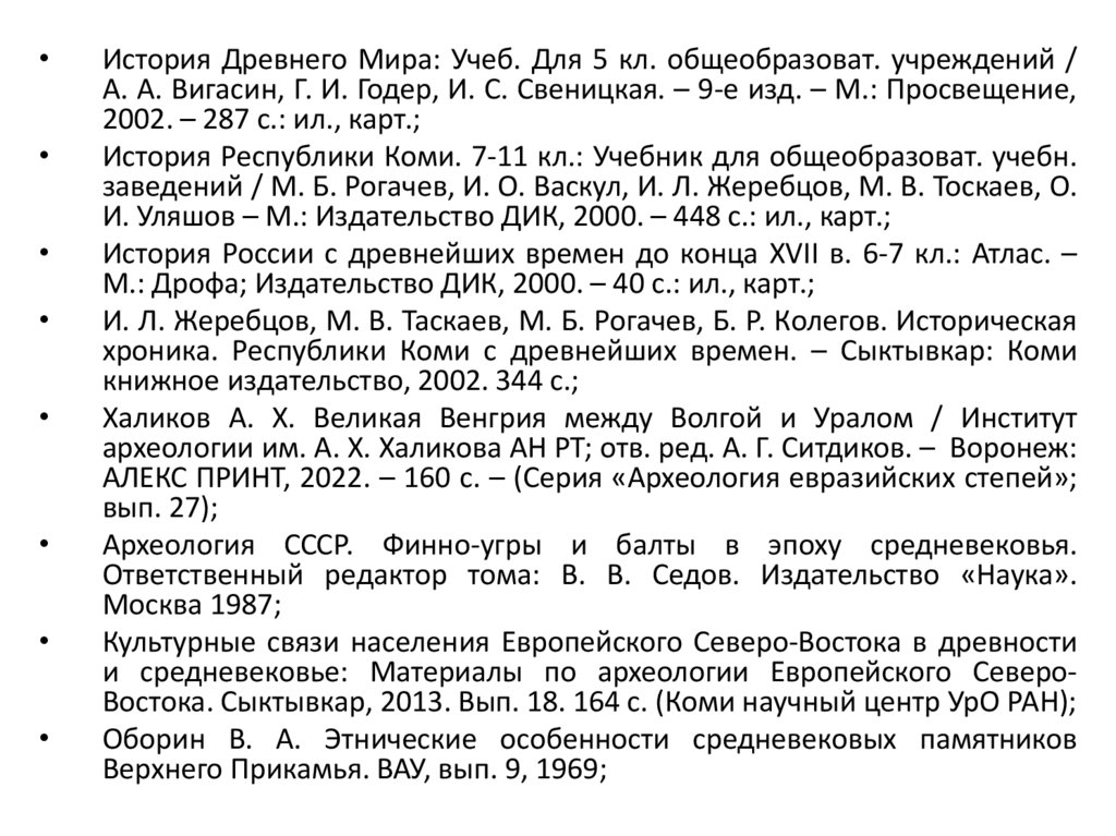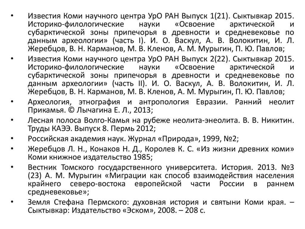 и средневековье: Материалы по археологии Европейского СевероВостока. Сыктывкар, 2013. Вып. 18. 164 с. (Коми научный центр УрО РАН);