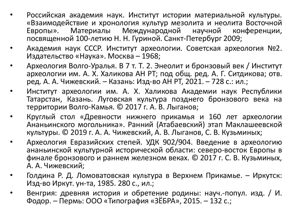 Бандер О. Н. Поселения турбинского типа в Среднем Прикамье.