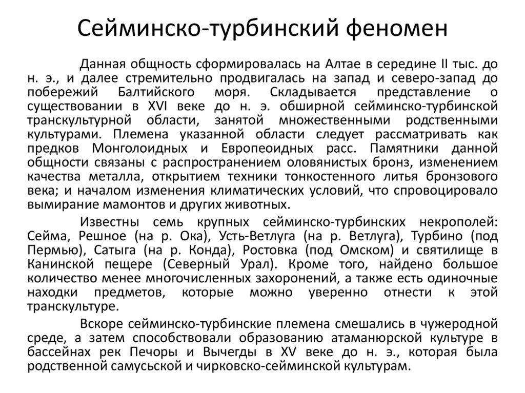 Сейминско-турбинский феномен XVI – XII вв. до н. э.