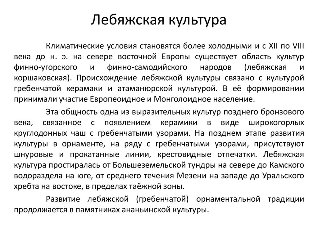 Льяловская культуры. Племена указанной культуры относились уральскому