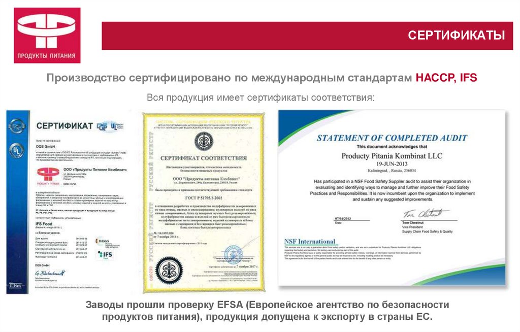 О КОМПАНИИ«ПРОДУКТЫ ПИТАНИЯ» крупнейший производитель